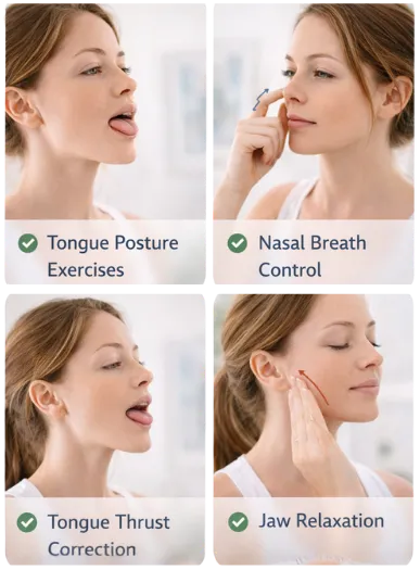 Through targeted neuromuscular exercises, we strengthen and coordinate the tongue, lips, soft palate, and airway muscles to improve nasal breathing and airway stability.